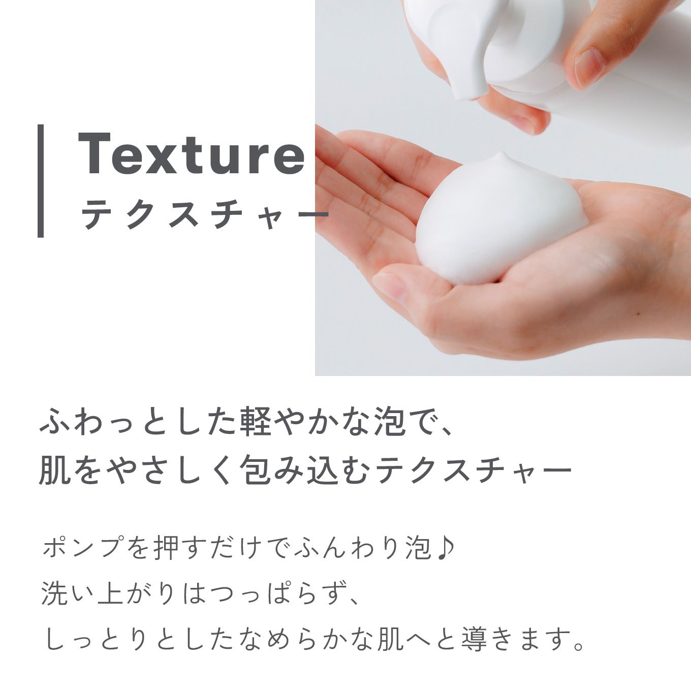 洗い上がりはつっぱらず、しっとりとしたなめらかな肌へと導きます。
