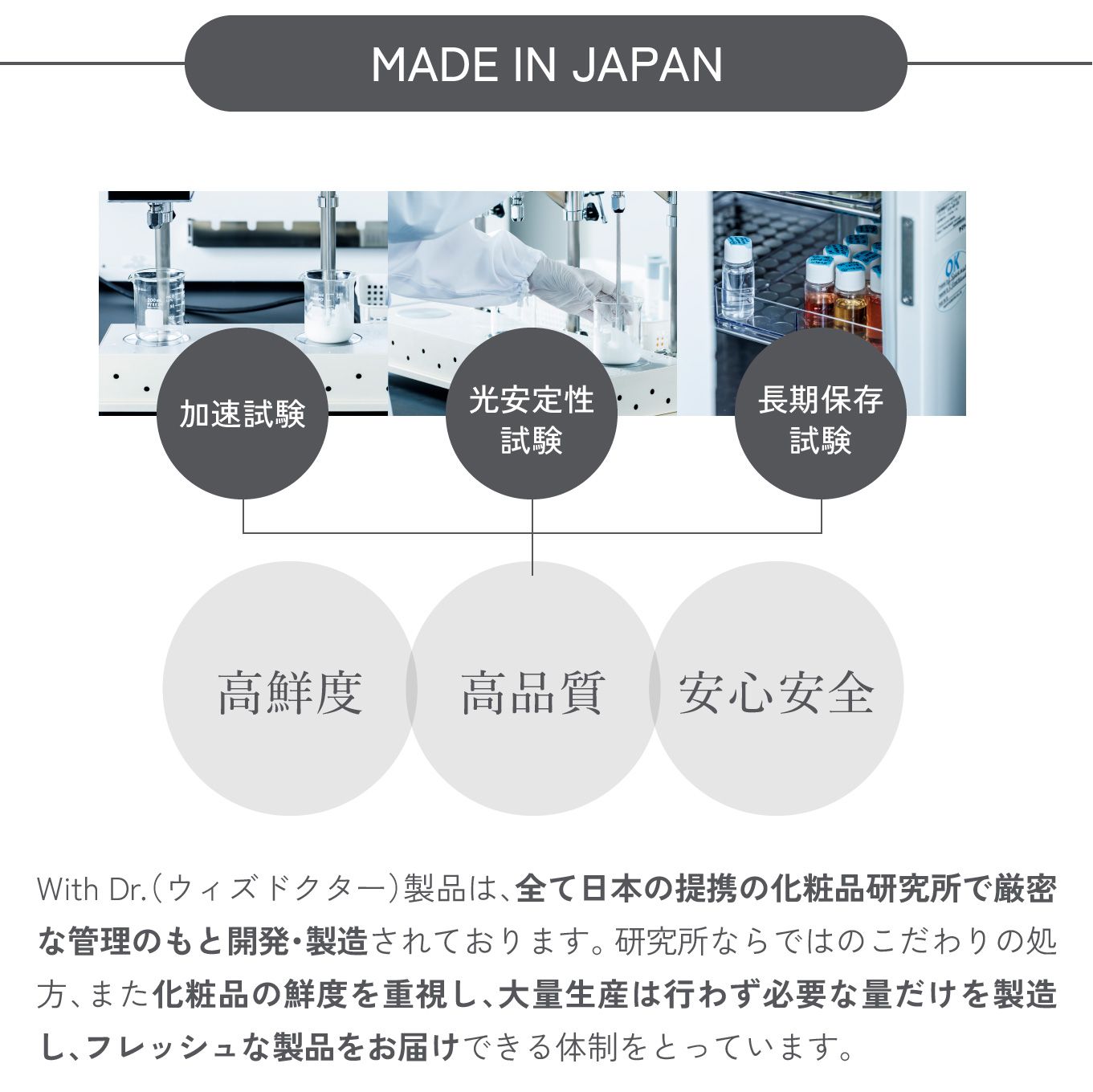 With Dr.(ウィズドクター)製品は、全て日本の提携の化粧品研究所で厳密な管理のもと開発・製造されております。