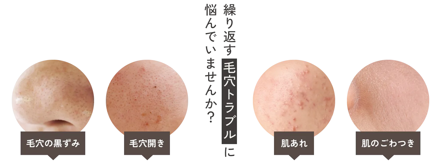 毛穴の黒ずみ、肌あれ、くすみ、ごわつき